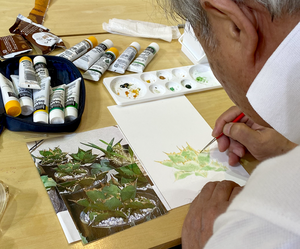 2回ほど、お休みしてしまった植物画教室ですが、今日はミヤチと二人で指導を受けました。とにかく描くこと&植物が大好きな二人です。