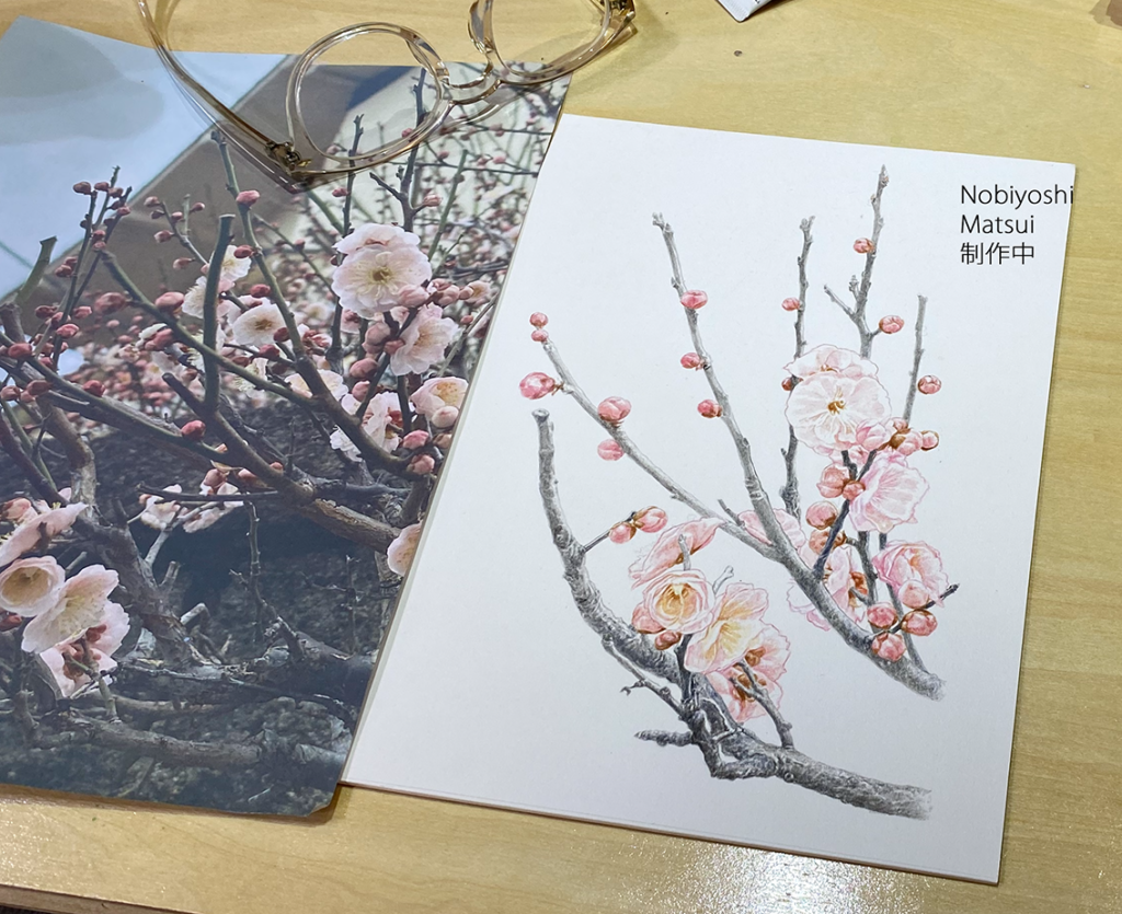 松井先生が描き始めた梅です。
